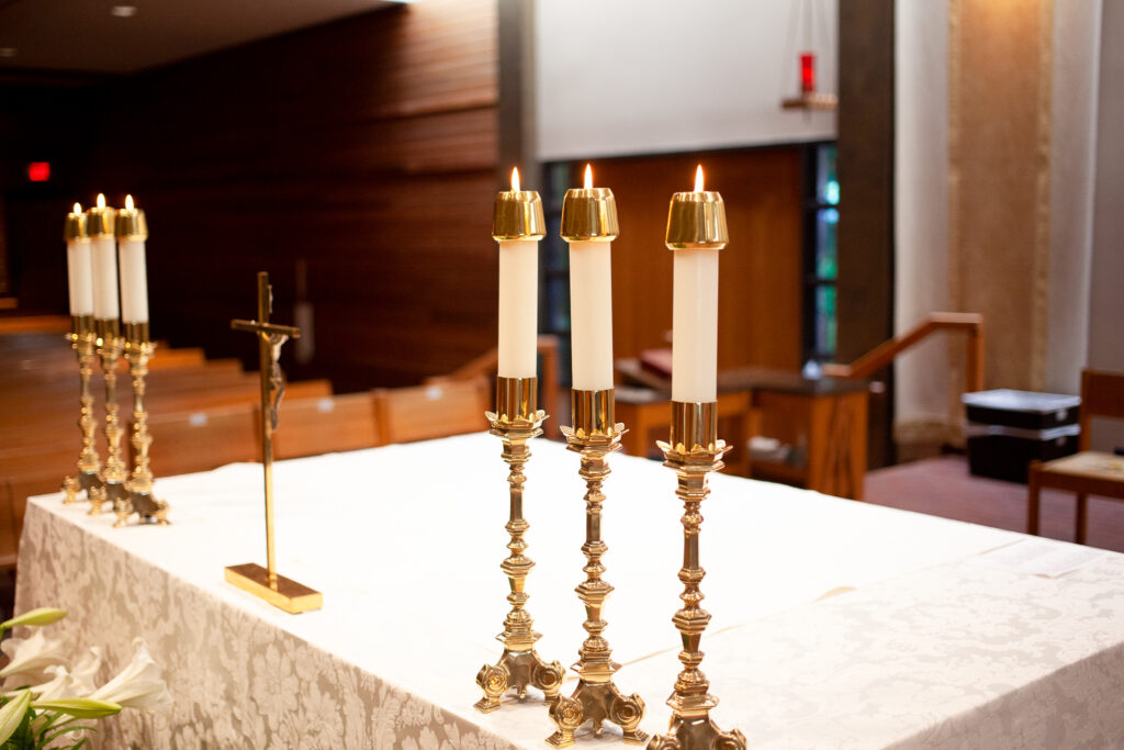 Sacristans work behind the scenes preparing items used during our liturgical celebrations, including hosts, wine, vessels, linens, vestments, etc. A training session is required. Sacristans serve at least once a month. We are also in need of sacristans for funeral liturgies.
